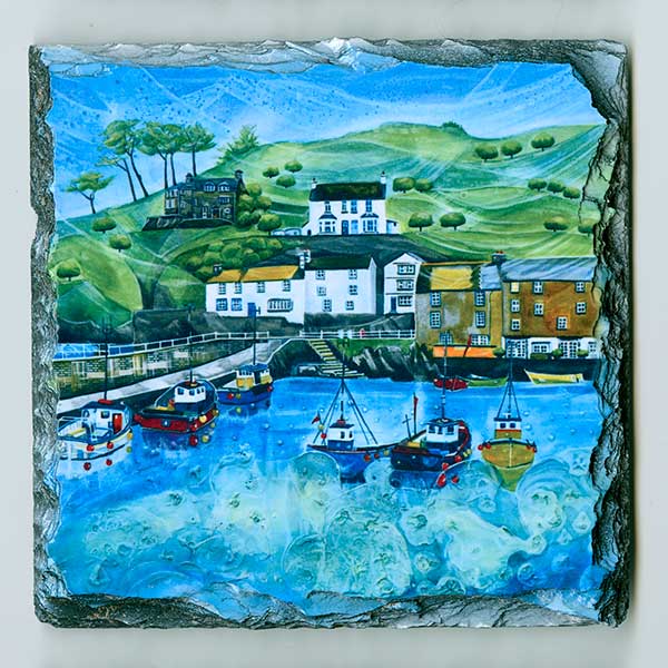 Short DescriptionPolperro Harbour Slate Coaster with a gloss finish.
